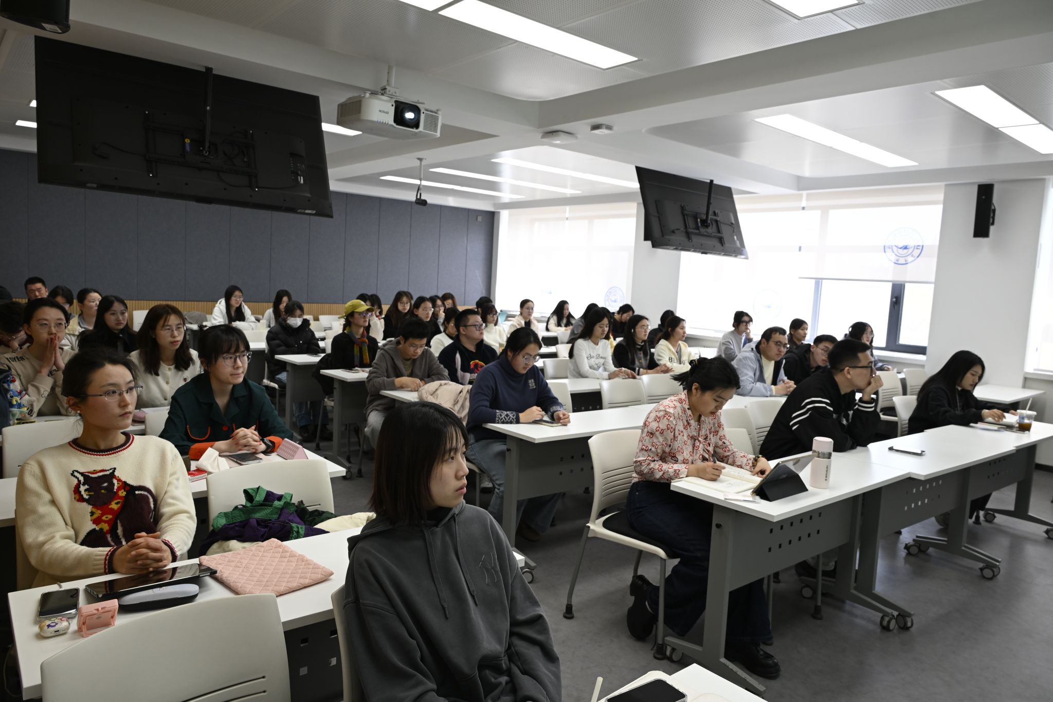 互动环节中,在场学生就求职中遇到的具体问题踊跃提问,孙卓逐一耐心解答并与同学们进行交流。金光旭结合电子往届毕业生发展情况,鼓励大家树立信心,充分准备。