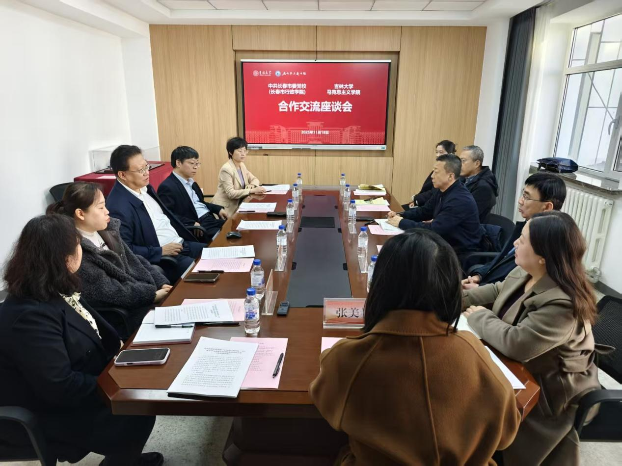 开展合作交流座谈。中共长春市委党校(长春市行政电子)副校长(副院长)郝峰、张宝忠,一级调研员马春凯,人事处处长董巍,人事处副处长黄思玉,党建党史教研部日常工作负责人张美兰;电子